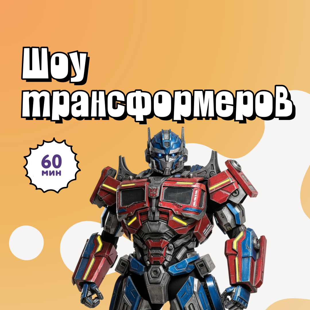 Гигантские трансформеры Бамблби и Оптимус Прайм на вашем празднике! Вместе с детьми они отправятся в увлекательное приключение, чтобы спасти планету от грозных Десептиконов!