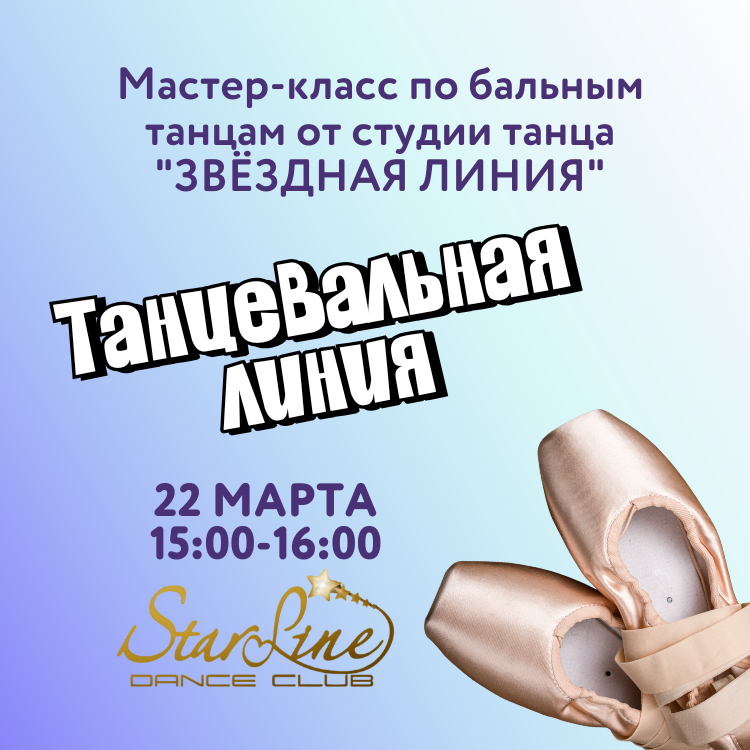 Студия танца «ЗВЁЗДНАЯ ЛИНИЯ» приглашает на показательные выступления и мастер-класс по бальным танцам.