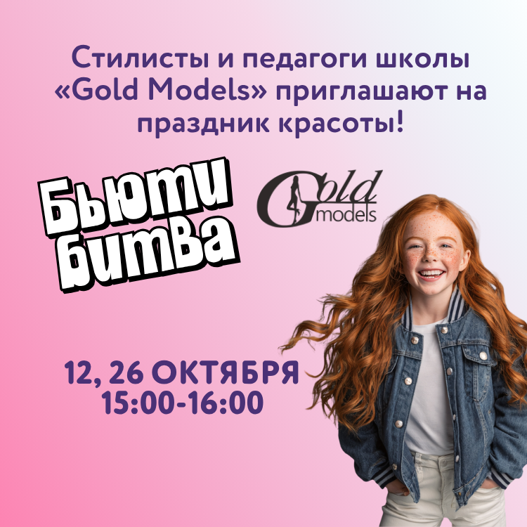Стилисты и педагоги модельной школы "Gold Models" приглашают на праздник красоты. Конкурсанты попробуют себя в создании причёсок и неповторимых образов. Лучшие получат сертификаты на обучение в модельной школе.
