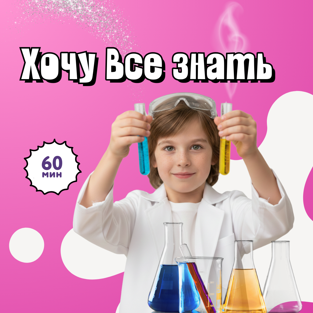 Увлекательный квест по парку с захватывающими опытами! Выполняя эксперименты, дети находят подсказки, чтобы в финале провести самый яркий и зрелищный эксперимент. Новые знания, яркие эмоции и полное погружение в игровой процесс!