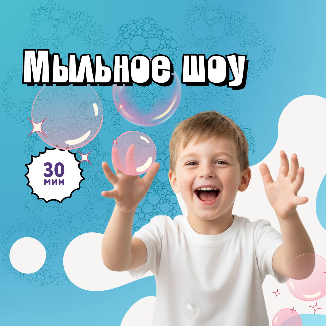 Шоу мыльных пузырей — это яркое зрелище, где дети не только любуются полетом пузырей, но и становятся участниками удивительных трюков!