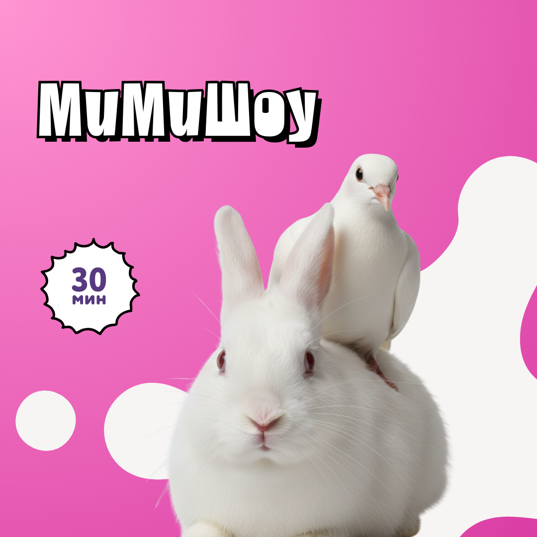 Трогательная программа с участием артистов-животных! Кролики, голуби, морские свинки и петушок устроят яркое шоу, полное сюрпризов и незабываемых номеров, в которых смогут принять участие дети!
